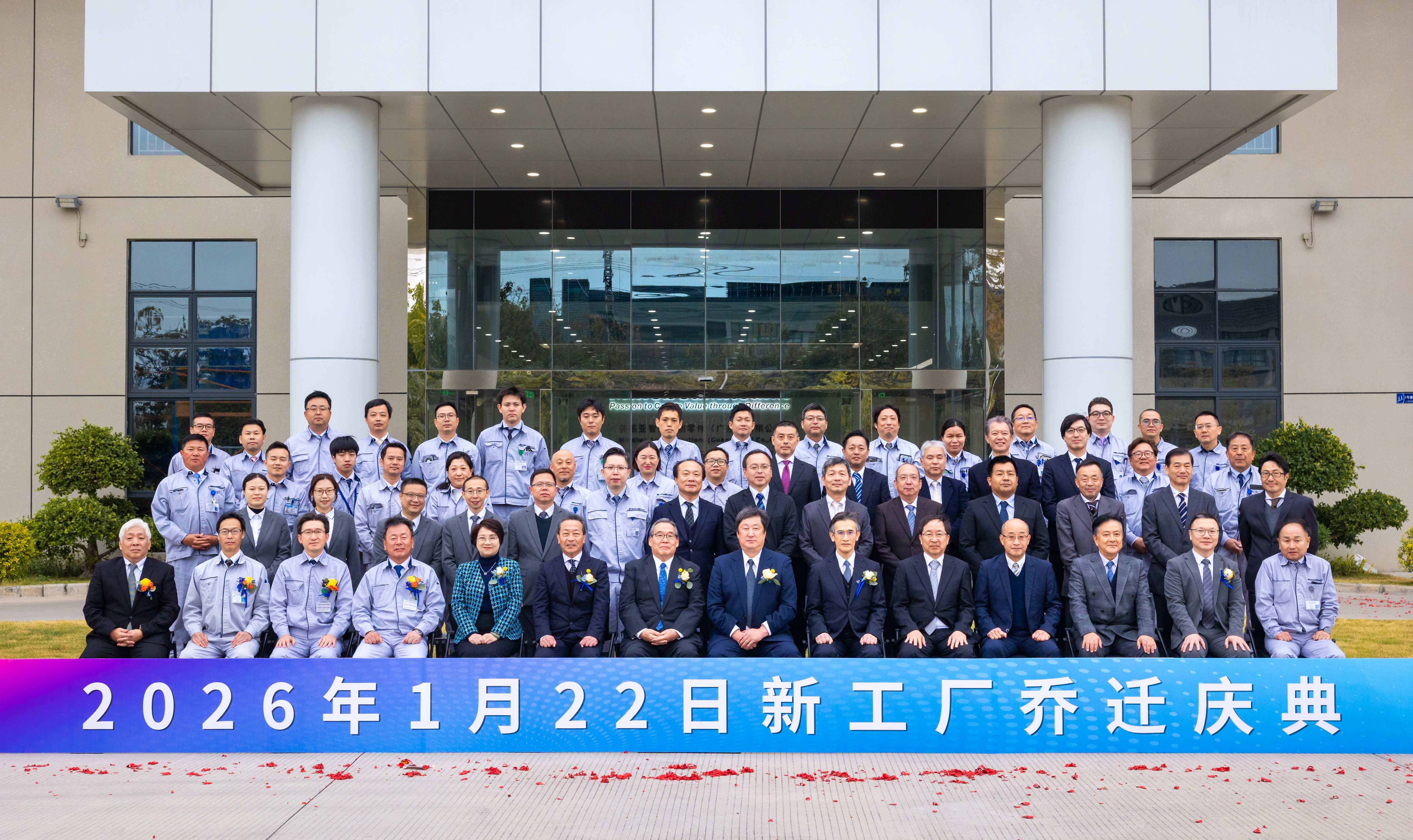 2026年1月22日,美蓓亚智连科创零件 (广东) 有限公司、美蓓亚智连科创零件研发(中山)有限公司、广濑模具(中山)有限公司、有信制造(中山)有限公司 四社乔迁庆典仪式在公司体育馆隆重举行。美蓓亚三美株式会社 岩屋副社长、AS事业本部 中村本部长、石上中国总支配人;美蓓亚智连科创零件(广东)有限公司 齐藤董事长,小榄镇工业总公司总经理、美蓓亚智连科创零件(广东)有限公司副董事长麦锦华女士,总经理助理胡嘉辉先生等嘉宾应邀出席,连同四社全体同仁共同见证这一重要时刻。